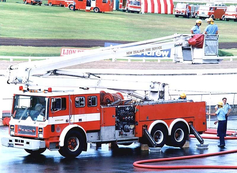 1981 Mack Tower at 1989 Fire Muster in New Zealand.